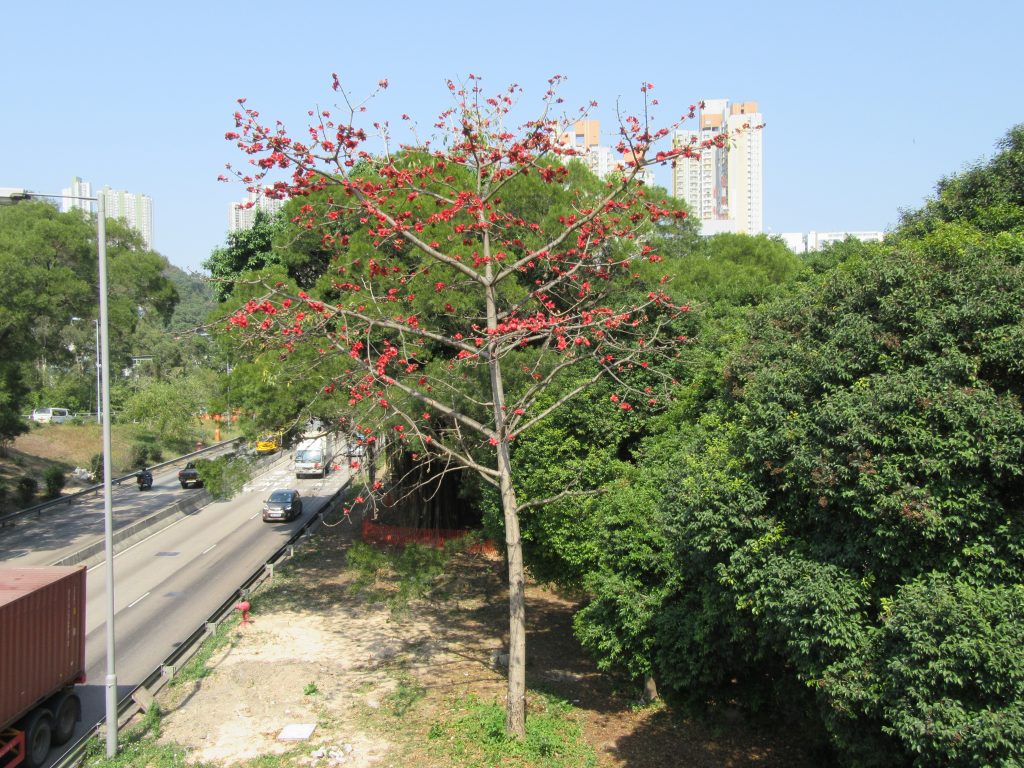 The flowering season (February–April) creates a spectacular red canopy.